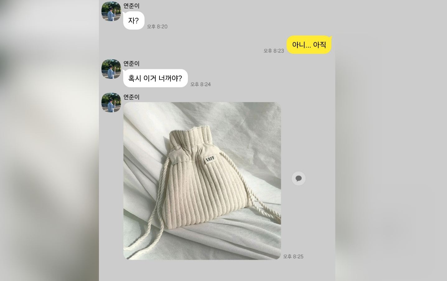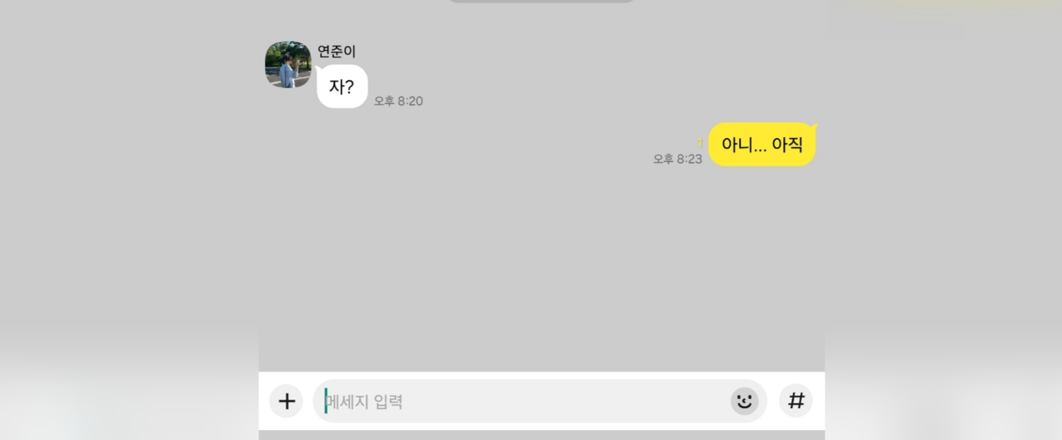 Khi tôi đang vén rèm cửa sổ, tôi thấy câu trả lời của Yeonjun và lập tức quay lại.