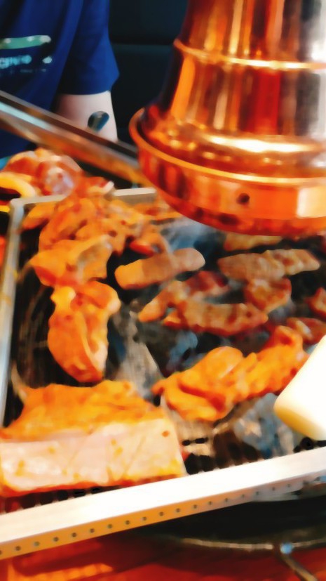 "Chiik-" Âm thanh thịt đang được nấu chín thơm ngon vang lên cùng với tiếng chuông kết nối cuộc gọi.