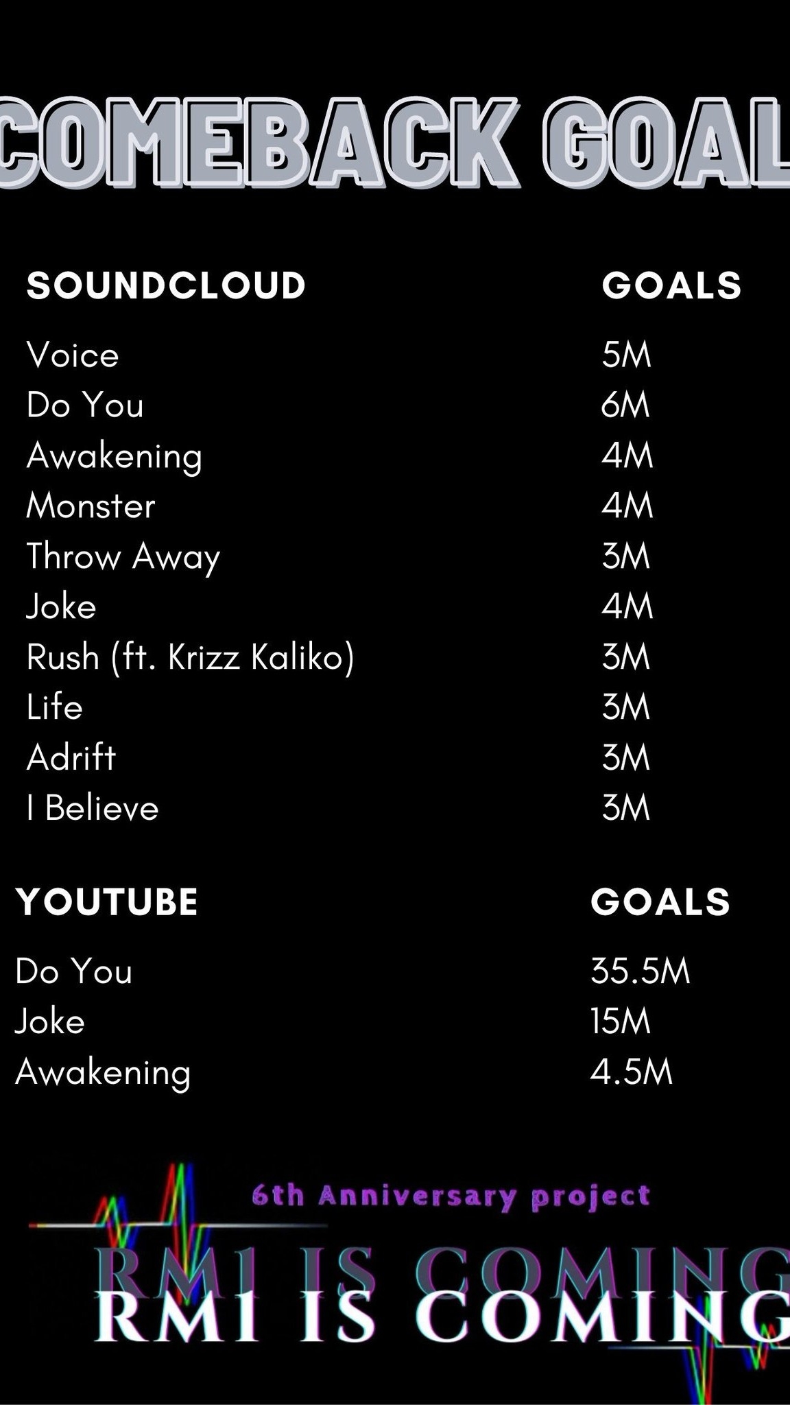 Xin chào! Chỉ muốn nhắc lại rằng ngày 20 tháng 3 đánh dấu kỷ niệm 6 năm ngày ra mắt "RM," mixtape đầu tay của Nam. Chúng ta đừng quên kiệt tác đó nhé.