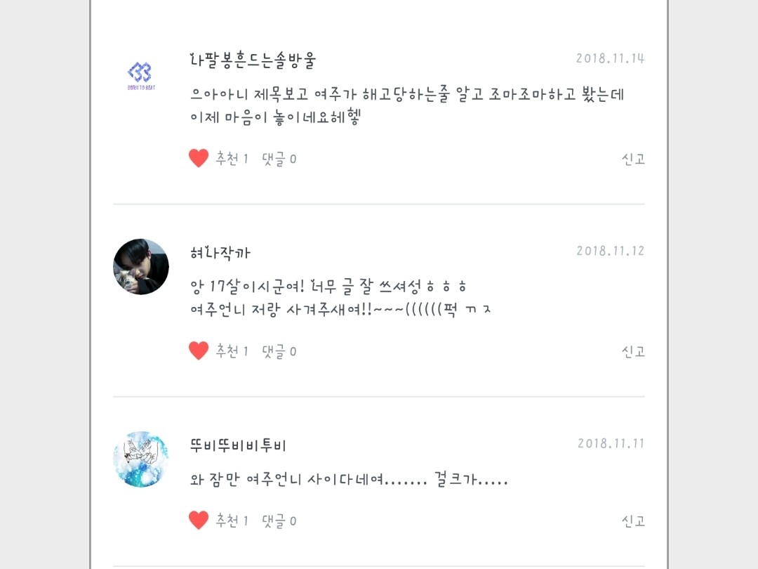 Tubittuvibitubi♡ - Nữ chính là con gái phải không?ㅎ Hyenajakka♡ - Không~ Mình không giỏi viết lắmㅜ♡ Solbangul who shakes the trumpet stick♡ - Chắc mình cũng nghĩ vậyㅎ