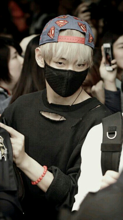 Khi tôi hỏi, Kim Taehyung tháo mặt nạ ra và bĩu môi, tỏ vẻ không hài lòng.