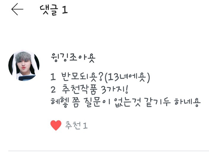 반모되구여 저 14살이고요 추천작은 아까 말씀드린것들이고요 얼공은 마지막에><