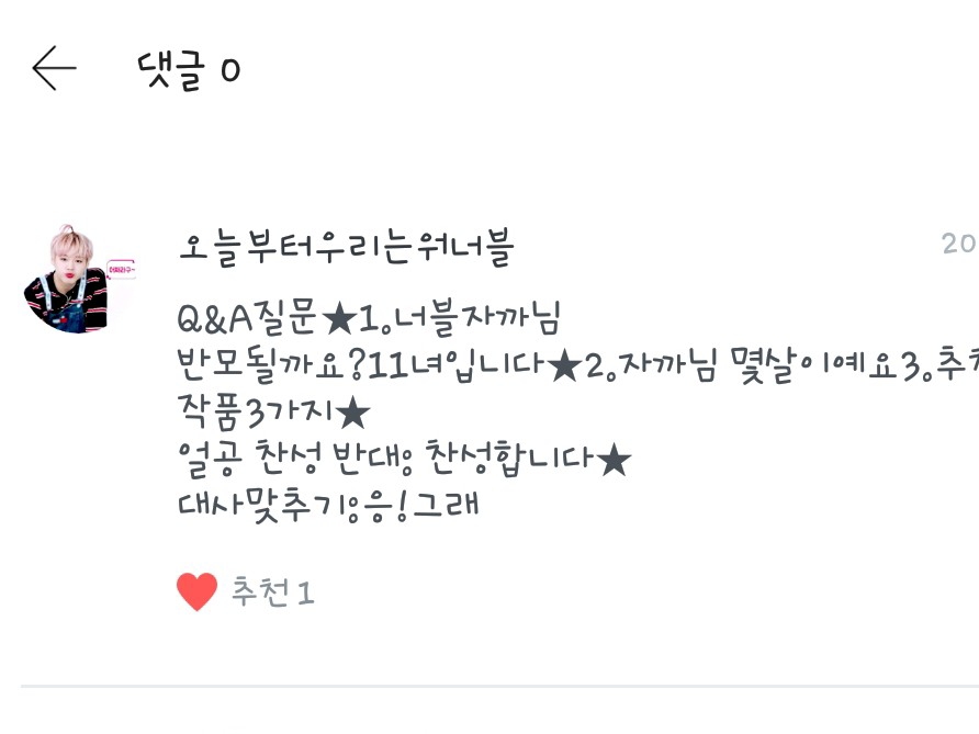 1.입덕은 제가 친구들이 하도 '워너원워너원' 그래서 워너원을 찾아보다가 입덕하게 되었습니다!!