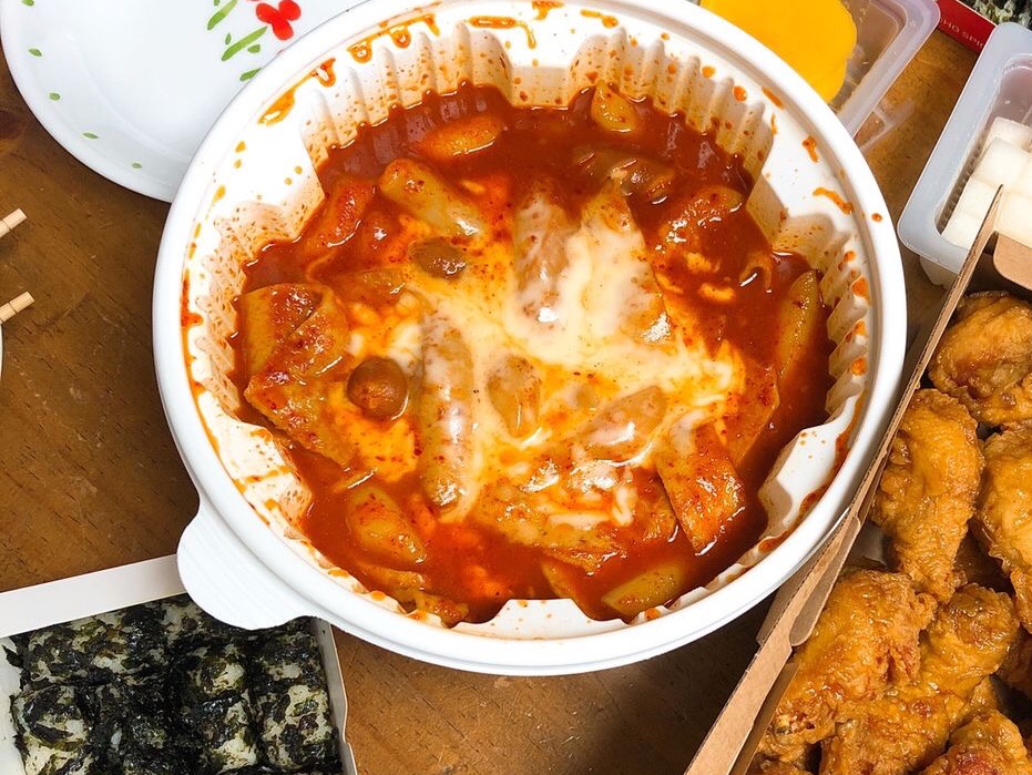 Món bánh gạo tôi gọi được mang ra và tôi ăn vội vàng.