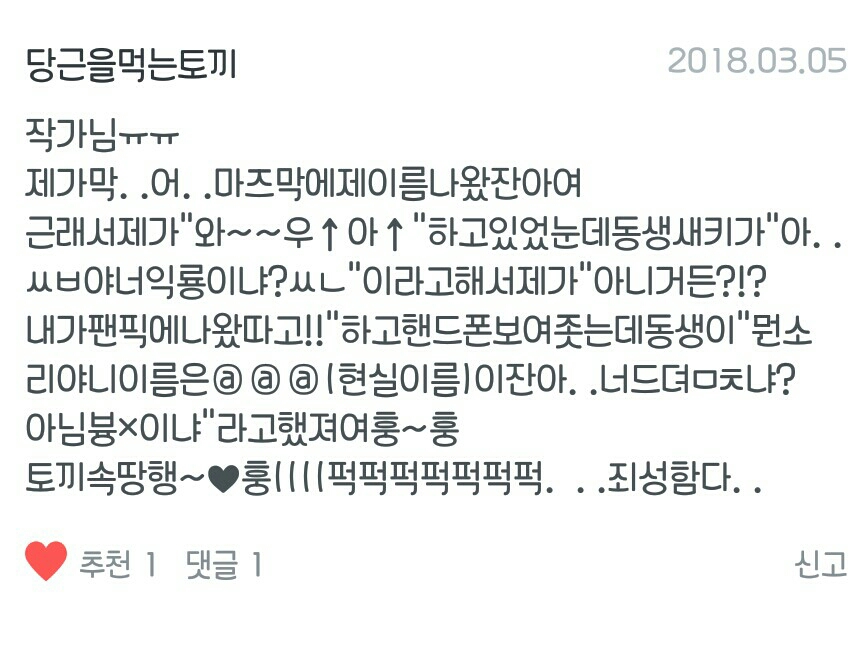 1. Yeondungi (biệt danh người đăng ký được sử dụng trong bài đăng đầu tiên 'Bạn trai ma cà rồng')