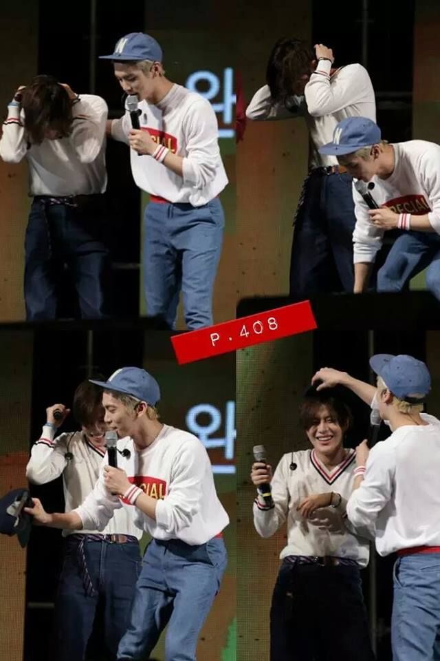 Jonghyun thấy vậy liền mỉm cười. Anh đội lại mũ cho Taemin và vòng tay ôm lấy cậu út để bảo vệ cậu khỏi côn trùng.