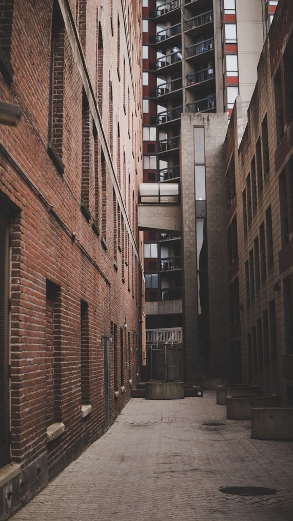 Nữ chính vội vã bước đi trong con hẻm, cảm nhận được bầu không khí rùng rợn.