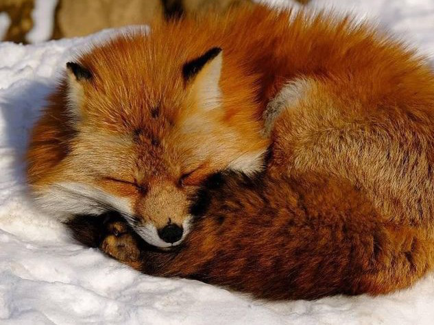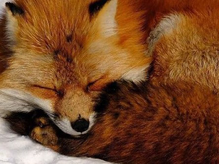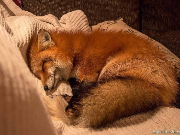 Con cáo nhắm chặt mắt và rúc sâu vào chăn, như thể nó đang lạnh.