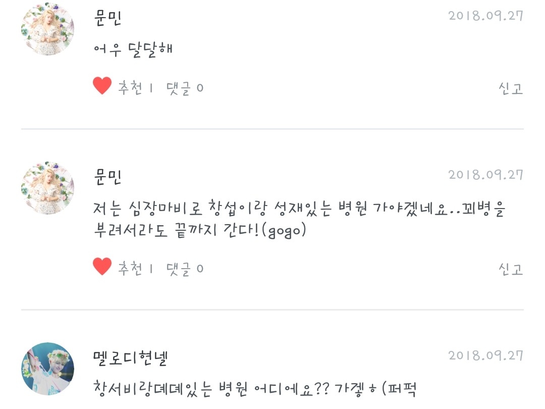 Melody Hyunnel♡ - Tớ cũng không biết nữa ㅜ Nếu cậu tìm ra thì cho tớ biết nhé...ㅎ Nhất định phải đi cùng nhau nhé ♡ Moonmin♡ - Đi cùng nhau nào!! Berry, ai mà chẳng muốn nôn khi thấy bệnh viện đó chứ...><