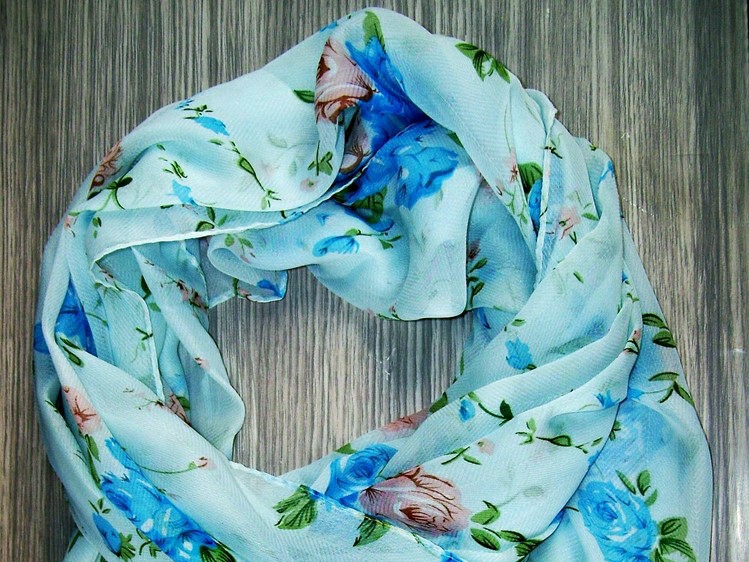 (Lấy ra một chiếc khăn quàng cổ màu xanh và cầm trong tay)