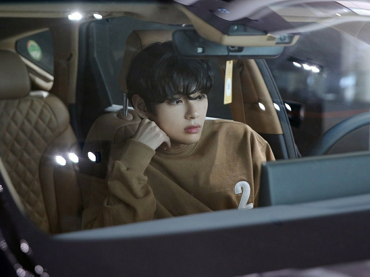 Nữ chính nghiêng người về phía Taehyung và áp mặt vào ngực anh.