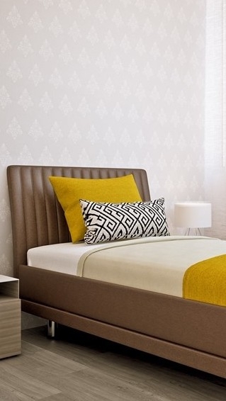 Jaehwan bước xuống cầu thang với mái tóc rối bù.