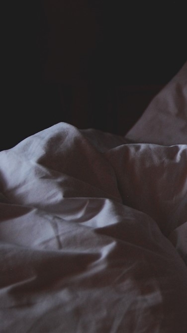 Nữ chính đang trốn dưới tấm chăn.