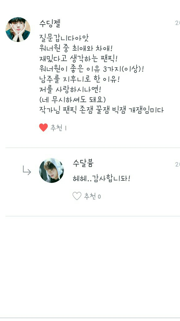 Nếu bạn đăng tải một tác phẩm mới, bạn sẽ chọn ai làm nam chính? → Dae-hwi?
