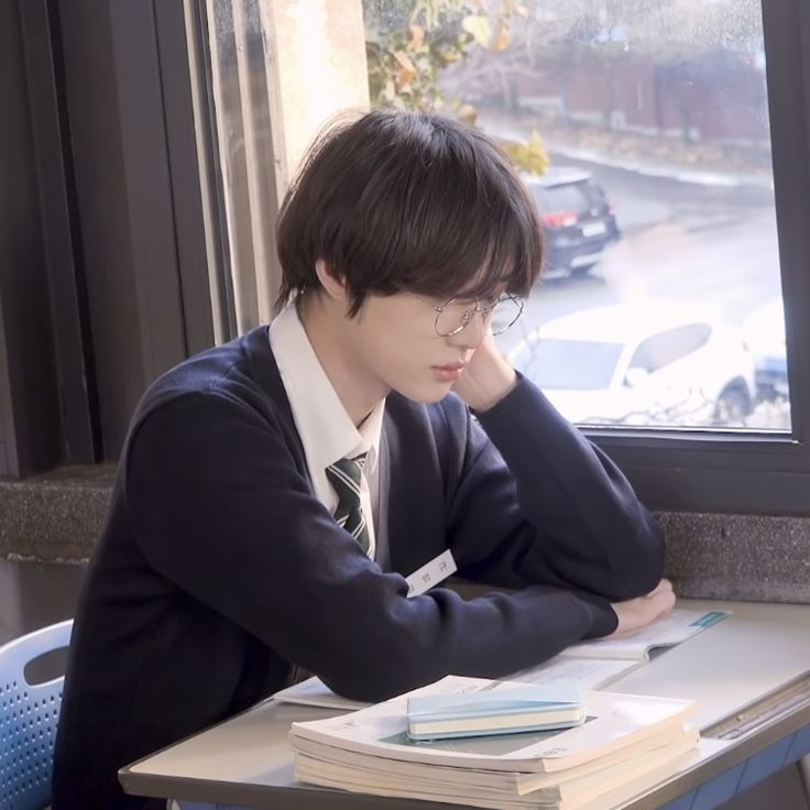 汝珠和贤珠落座。汝珠坐在她后面,贤珠坐在她前面。后面还有一个空位,一个男生戴着耳机在练习本上写写画画。