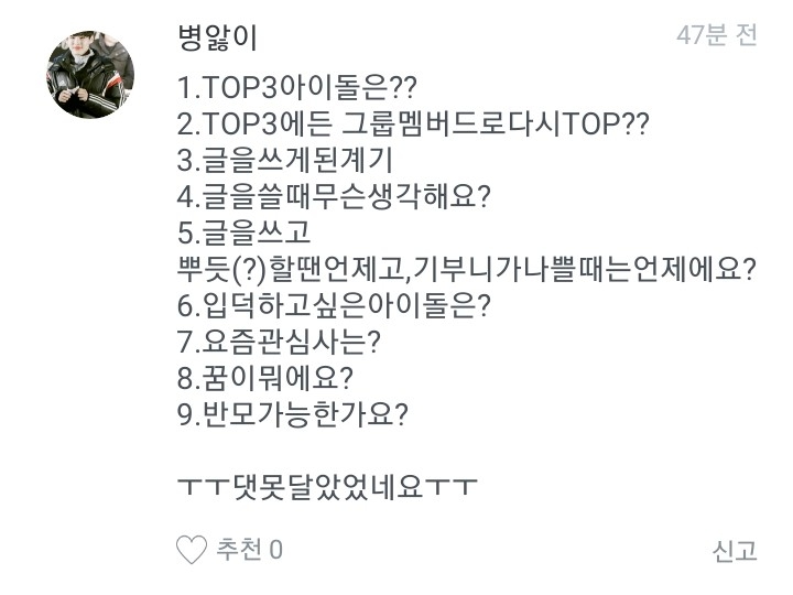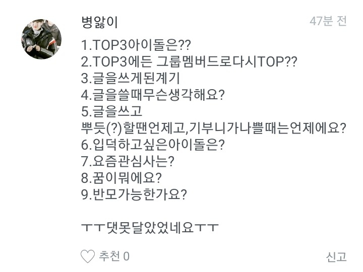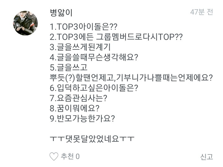 병앓이님 댓글부터 할게요.