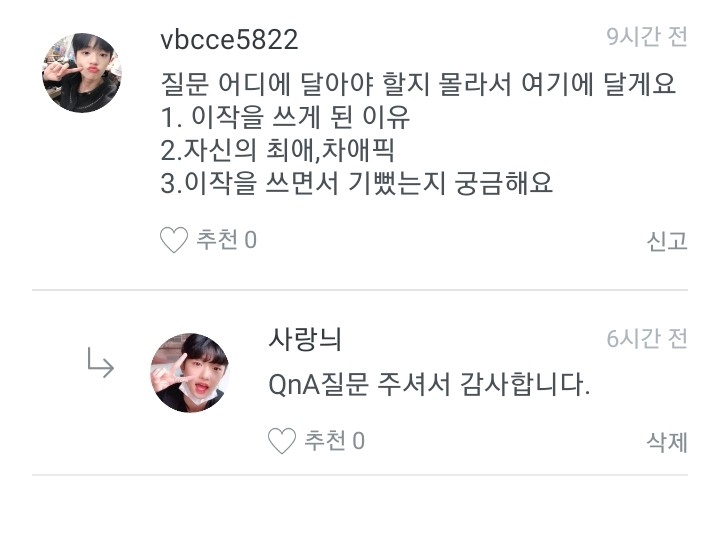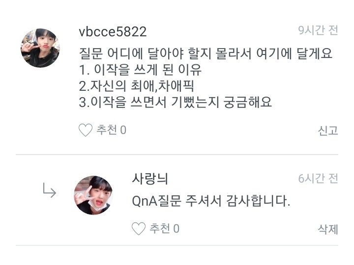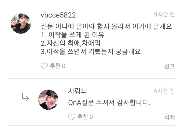 히히 그럼 오늘 QnA는 여기까지! 그럼 안뇽!