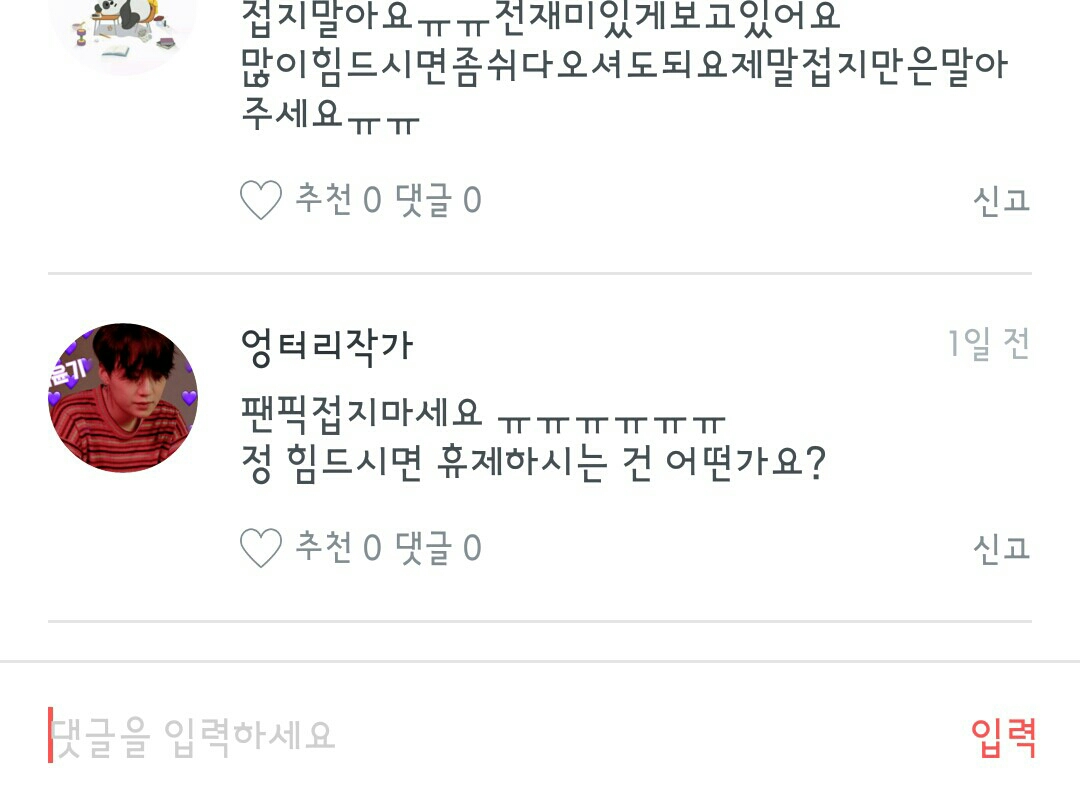 여러분들이 힘들면 휴재하고 오시라고 하셨는데!