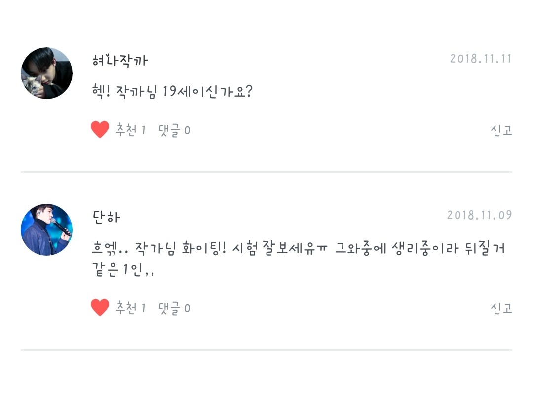 Danha-nim♡ - 哇……Danha-nim,你真的需要振作起来……!!谢谢你♡♡ Hyenajakka-nim♡ - 不!我才17岁ㅎ♡♡