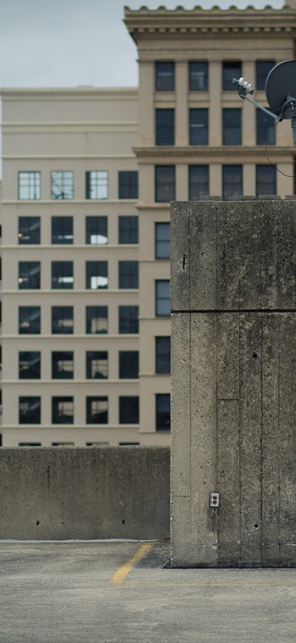 女主角走到屋顶上。