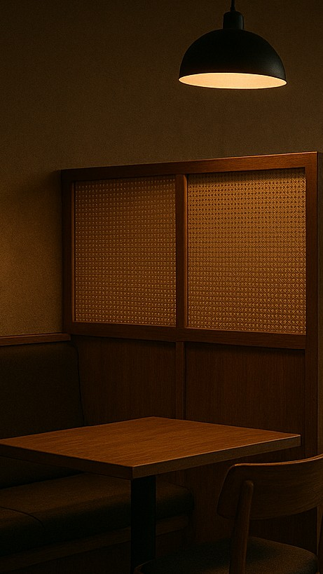 一个安静的地方,桌子和房间之间用一个小隔板隔开。感觉就像一个只属于我们两个人的秘密空间。