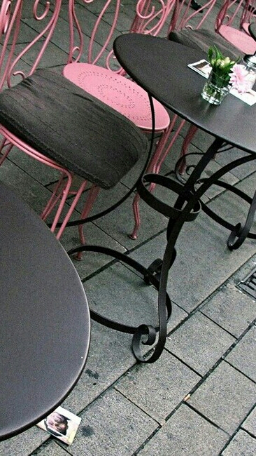 哎哟!(我路过时被咖啡馆的椅子绊倒了)
