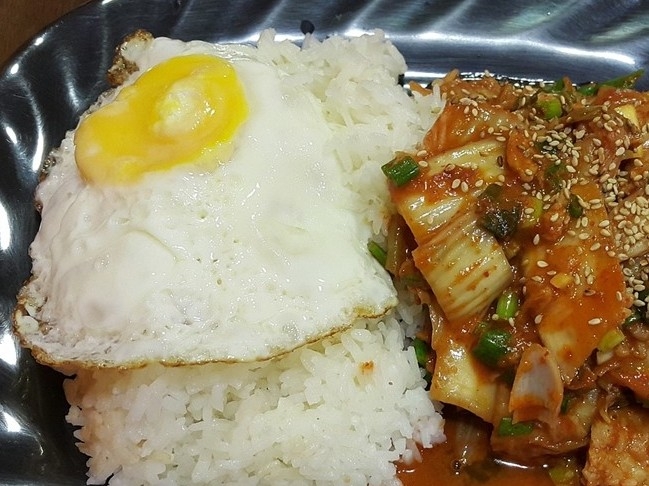 方便米饭、煎蛋和泡菜