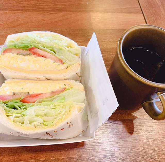 “哈哈,我刚到这儿呢!听说这儿的鸡蛋吐司很好吃,所以就买了一些!!”