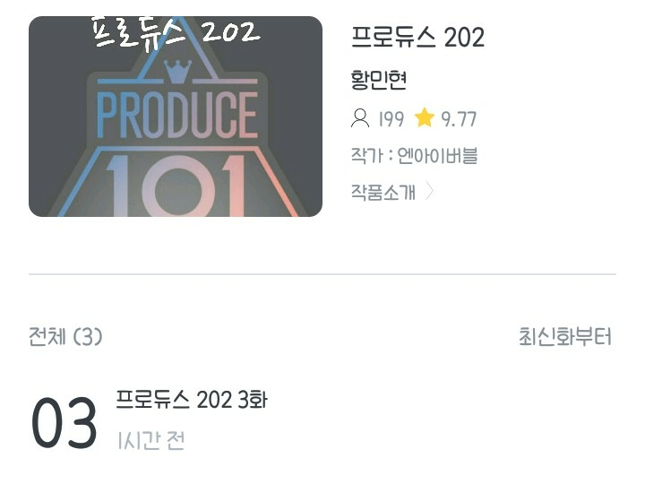 是《Produce 202》!光看标题就感觉像是神作。感觉这部作品讲述的是女主角参加《Produce 202》并最终出道的全过程:3 我觉得看这部作品的时候,我又能召唤出国民剧了……ㅎ