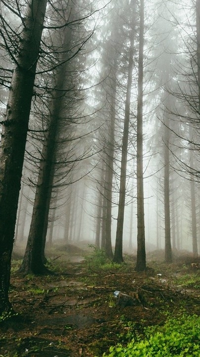 森林被树木和浓烟环绕。