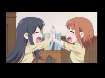 你坐在座位上,和尤里击掌。