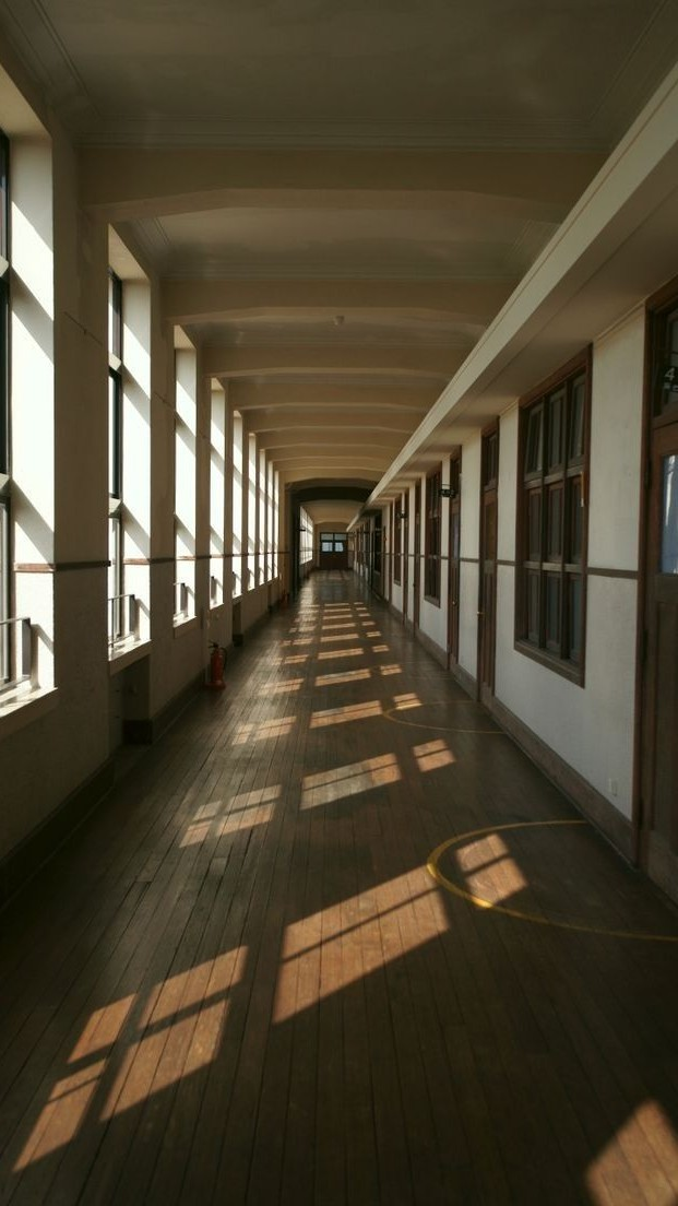 从走廊过来的时候,你看到尤里举着双手站在教室外面。