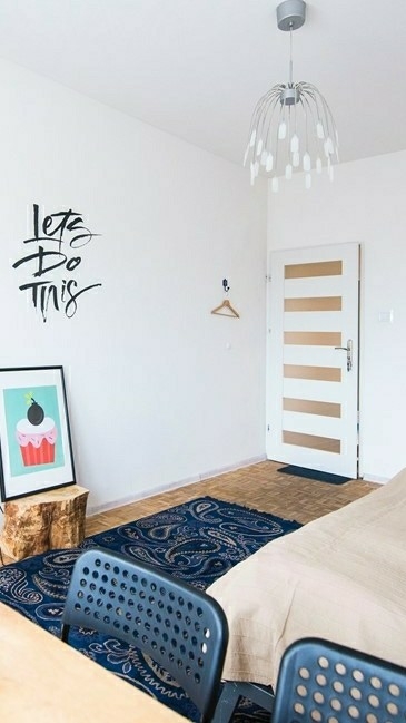 女主角坐在桌子旁,尹基躺在床上看着她。