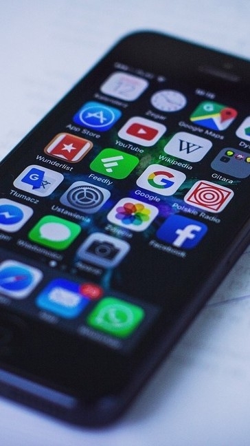 女主角看着她的手机。