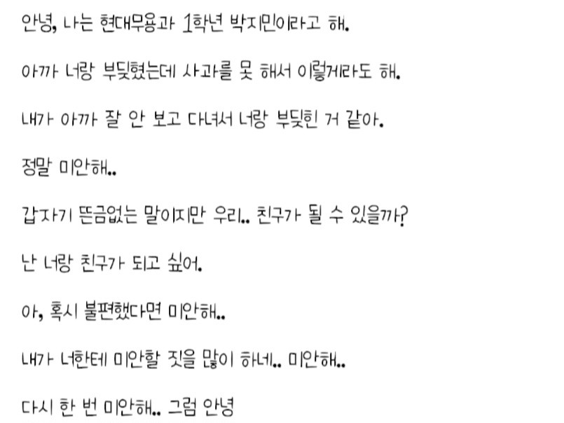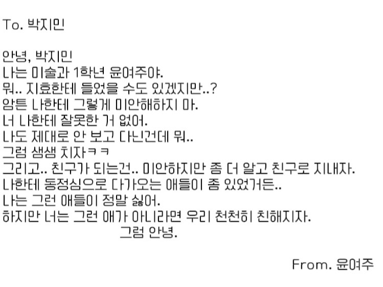 嘿,Jimin,美術系的女生剛才來找過你。