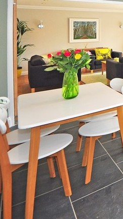 咱們坐這兒吧。