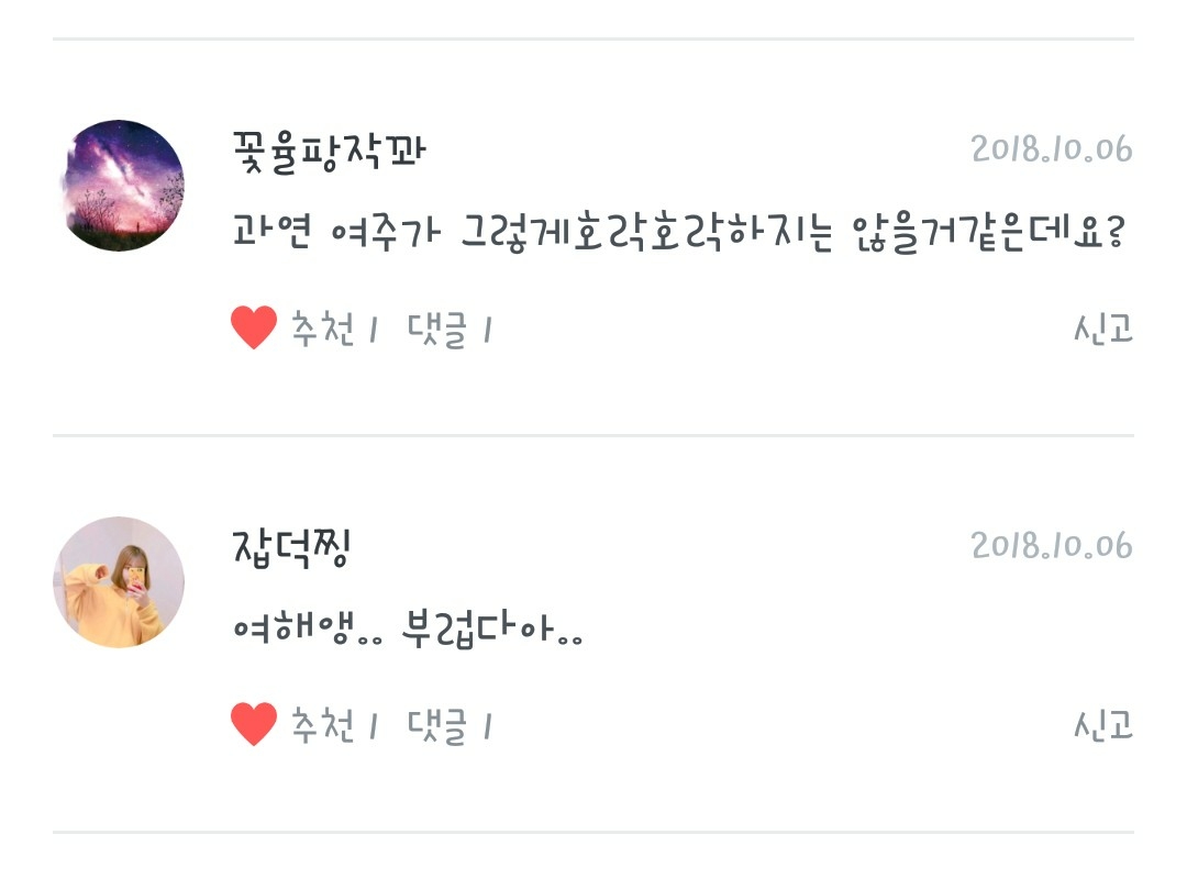 일찍 왓는데도 댓글이 세개나 달려잇다늬!