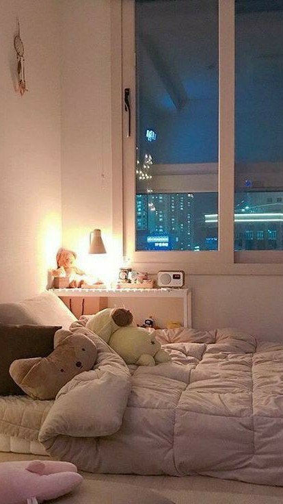 女主角回到家,做完作業,然後躺在床上。