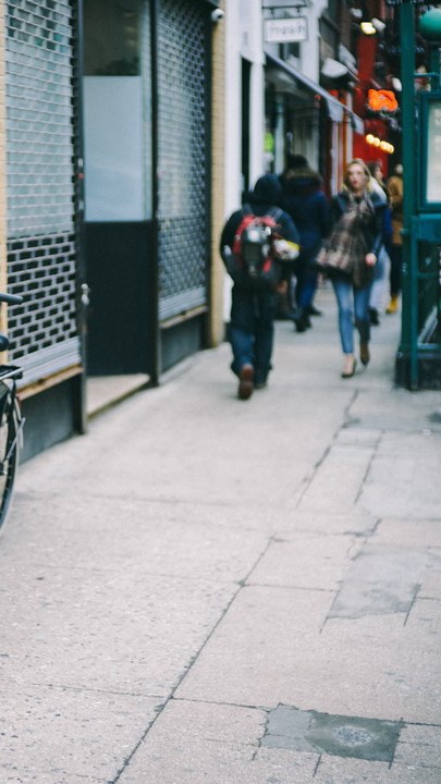 女主角在熙熙攘攘的人群中緩緩漫步,一種奇特的穩定感讓她感覺好了一些,而從耳機裡傳出的聲音讓她不後悔轉身回家。