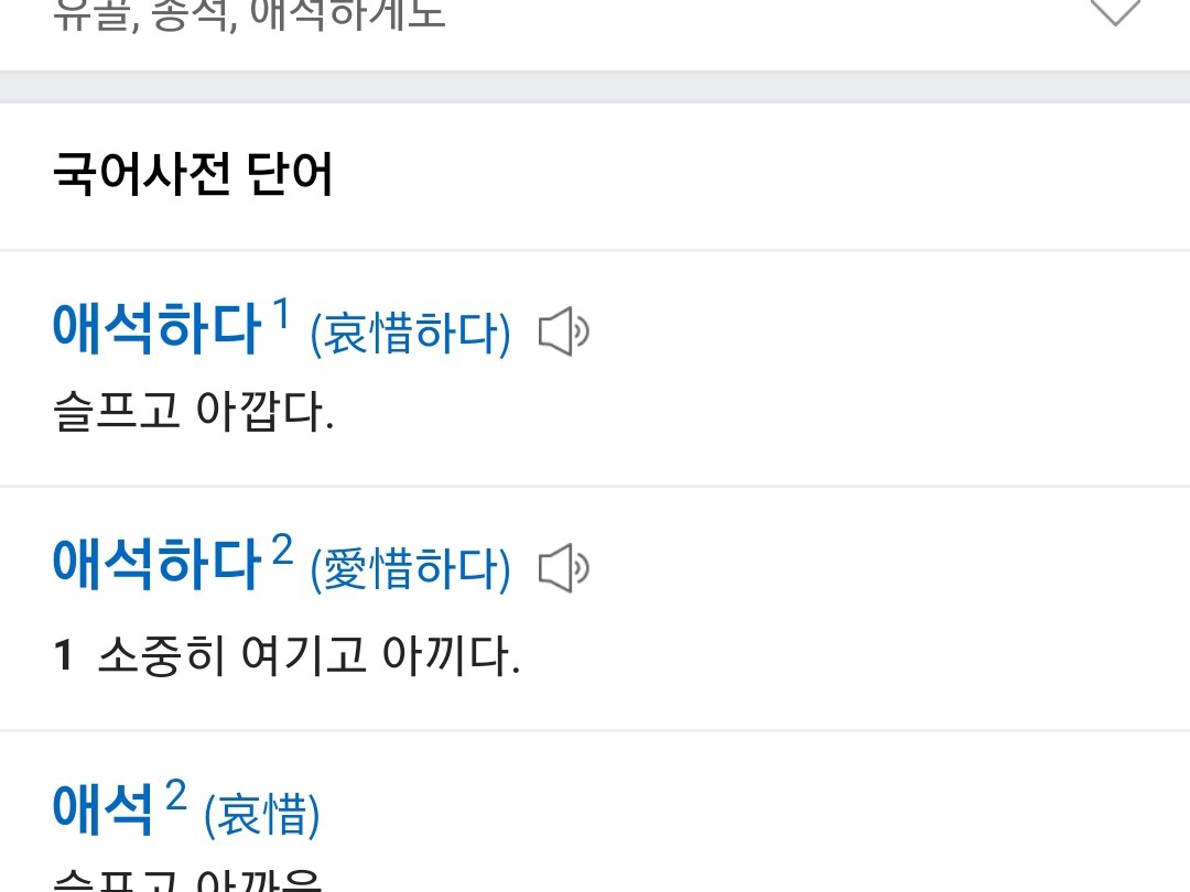 「Aeseok」這個字有兩個意思!由於漢字不同,這兩個意思顯然不同!