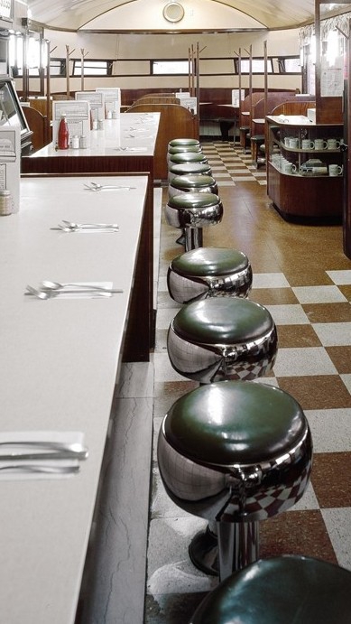 於是兩人前往自助餐廳吃飯,坐在常坐的靠窗座位上,手裡拿著服務生遞給他們的托盤,彷彿習以為常。