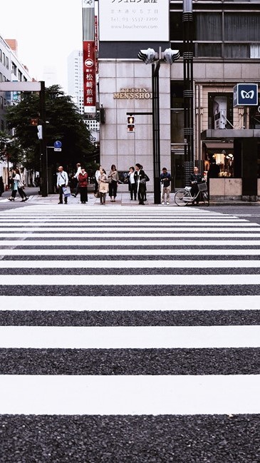 然後,就在這時,信號燈由紅色變綠,女主角跑著迅速穿過人行橫道。